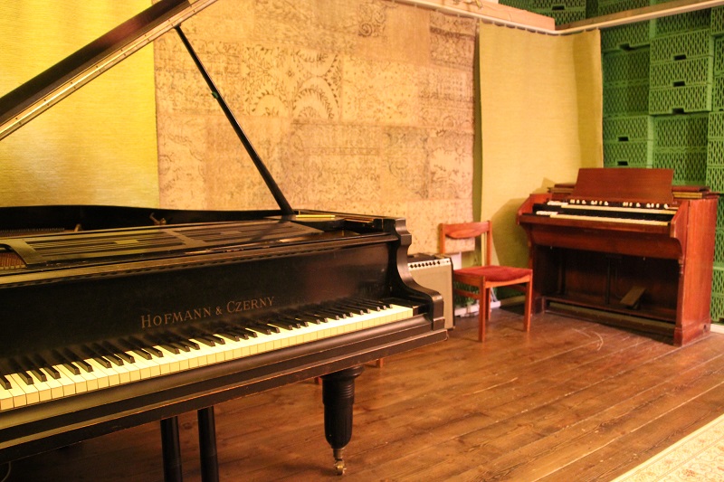 STEINWAY grand piano Model O Studio (1917, original easy mechanics) , HAMMOND A101 and B3 with LESLIEs 122, RHODES 88, Fender Rhodes Tremolo, MiniMOOG XL, ARP 2600, KORG MS 10 and MS 20 , two POLYVOKSes and other vintage analog synths available.